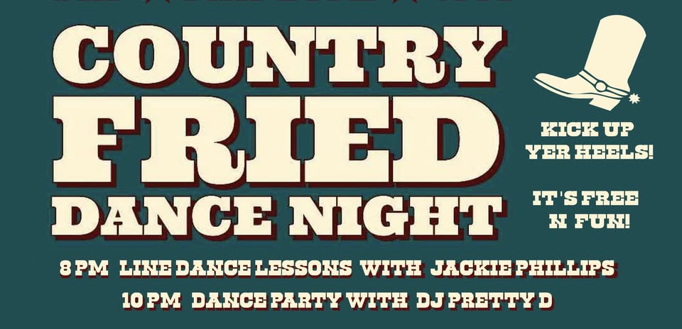 9:15pm open dance. Followed at 10 with DJ Pretty D spinning a Night of Kickin’ up Yer Heels COUNTRY MUSIC!! Come early for a bite to eat! Everyday Happy Hour – Buy 1 menu Item, get 1 half price, 5-7pm. Kitchen open till 9pm! Yee Haw, Se you there!