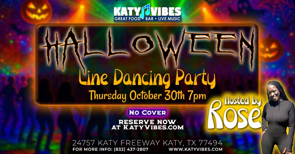 🍹 Thursday, October 30 at 7 PM, our Halloween Line Dancing Party hits Katy Vibes—spooky steps, friendly vibes, no cover. 🎁🎷 🌴 Fuel your dancing with great food from the kitchen, plus a full bar pouring cocktails, beer, and refreshing mocktails. 🍹🔥 🎷 Hosted by Rose, we’ll cue beginner-friendly line dances and Halloween favorites—easy instruction, upbeat playlists, and plenty smiles tonight. 🏝️🌴 🏝️ Sip seasonal flavors or your go-to pour while you master the steps—our bartenders keep the spirits flowing smoothly. 🎷👯 🎁 It’s completely no cover—just RSVP to save your spot. Grab friends, wear costumes, and plan a spirited, camera-ready dance night. 🎁🍹 👯 All levels welcome—first-timers to pros. Follow along, request favorites, and join group dances that keep the floor buzzing. 🔥🏝️ 🔥 Thursday, October 30 at 7 PM—meet at Katy Vibes. Reserve now at katyvibes.com and dance Halloween night away. 🍹👯 #Halloween #LineDancing #KatyVibes #KatyTX #NoCover #HostedByRose #DanceParty #HoustonNightlife #ReserveNow #VibeStronger
