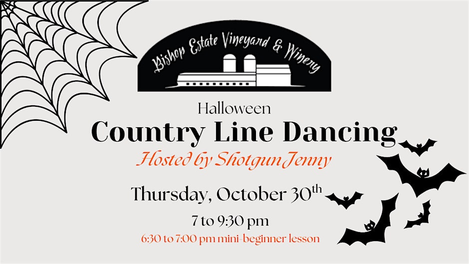 Come join us for a night of country line dancing with the one and only Shotgun Jenny at Bishop Estate Vineyard and Winery! Get ready to kick up your heels and dance the night away to some awesome country tunes. Whether you’re a seasoned pro or a beginner, everyone is welcome to join in on the fun.