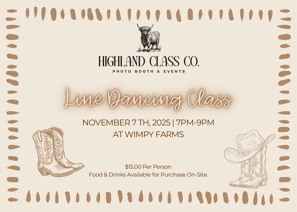 Get ready for a night of dancing, laughter, and country fun at Wimpy Farms! Our beginner friendly line dancing class, led by instructor Hannah Von Hof, is the perfect way to learn new steps, meet new people, and enjoy a relaxed Friday night out.