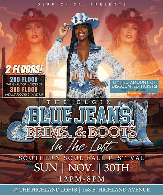 Get ready for a day filled with the smoothest Southern Soul, House and R&B vibes at The Elgin Blue Jeans, Brims &Boots In The Loft Festival